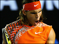 उधर पुरुष वर्ग में दूसरे नंबर के खिलाड़ी स्पेन के रफ़ाएल नडाल भी तीसरे दौर में पहुँच गए हैं. उन्होंने बेहद आसान मुक़ाबले में फ़्लोरेंट सेरा को 6-0, 6-2, 6-2 से शिकस्त दी. मैच के बाद नडाल ने कहा, "मैं खुश हूँ, मैने ठीक से खेला ख़ासकर तब जब मैं प्रतियोगिता का दूसरा ही मैच खेल रहा था." उधर चौथी वरीयता प्राप्त खिलाड़ी रूस के निकोलाई डेविडेंको ने अपने मैच में फ़्रांस के निकोलस माहुत को 6-4, 6-0, 6-3 से हराया. तीन बार ऑस्ट्रेलियाई ओपन के सेमीफ़ाइनल में पहुँचने वाले एंडी रॉडिक को भी अपना मैच जीतने में ज़्यादा मुश्किल नहीं हुई. उन्होंने माइकल बेरर को 6-2, 6-2, 6-4 से शिकस्त दी. अपना मैच जीतने वालों में 14 वीं वरीयता प्राप्त मिखाइल यूज़नी का नाम भी शामिल रहा. |