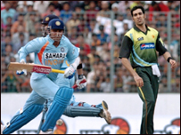 17वें ओवर में मिस्बाह 24 रन बनाकर मैदान पर टिकते नज़र आ रहे थे लेकिन ईशांत ने पाकिस्तान का पाँचवा विकेट लेकर ये ख़तरा भी दूर कर दिया. इसके बाद पीयूष चावला ने जल्दी-जल्दी अफ़रीदी और तनवीर को भी आउट कर दिया. पाकिस्तान की हालत का अंदाज़ा इसी बात से लगाया जा सकता है कि 25 ओवरों में उसके करीब 150 रन ही बने थे. केवल कप्तान शोएब मलिक अपने दम पर कोशिश करते रहे. लेकिन पीयूष चावला ने मलिक (53 रन) के रूप में नौवां विकेट चटकाकर पाकिस्तान की जीत की किसी भी उम्मीद पर पानी फेर दिया. भारतीय पारी