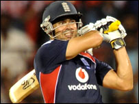 भारत ने पहले बल्लेबाज़ी करते हुए 22 ओवर में चार विकेट पर 166 रनों का स्कोर खड़ा किया था. लेकिन डकवर्थ लुईस नियम के कारण इंग्लैंड को 22 ओवर में जीत के लिए 198 रन का लक्ष्य मिला. लेकिन इंग्लैंड की टीम 22 ओवर में आठ विकेट पर 178 रन ही बना सकी. एक समय इंग्लैंड की हालत बहुत ख़राब थी. इंग्लैंड ने 52 रन पर तीन विकेट गँवा दिए थे. लेकिन ओवैस शाह ने मैच में जान फूँकी. उन्होंने फ़्लिंटफ़ के साथ अच्छी साझेदारी की. लेकिन ओवैस सिर्फ़ 48 गेंद पर 72 रन बनाकर आउट हो गए. इसके तुरंत बाद एंड्रयू फ़्लिंटफ़ भी 30 गेंद पर 41 रन बनाकर आउट हो गए. इसके बाद तो इंग्लैंड की बल्लेबाज़ी बिखर गई. इससे पहले रवि बोपारा एक रन पर, इयन बेल 12 रन पर और केविन पीटरसन सिर्फ़ पाँच रन बनाकर आउट हो गए.