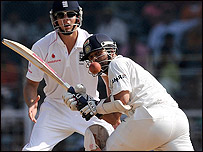 भारत: 241 & 387/4 इंग्लैंड: 316 & 311/9 (पारी घोषित) भारत ने इंग्लैंड के ख़िलाफ़ चेन्नई में पहला टेस्ट छह विकेट से जीत लिया है. भारत के सामने जीत के लिए 387 रनों का लक्ष्य था. मैच के आख़िरी दिन सचिन और युवराज की बेहतरीन साझेदारी की बदौलत भारत ने ये लक्ष्य चार विकेट गंवाकर हासिल कर लिया. सचिन तेंदुलकर ने शानदार नाबाद शतक जड़ा तो युवराज सिंह ने नाबाद 85 रन बनाए. वीरेंदर सहवाग को मैन ऑफ़ द मैच चुना गया. दूसरी पारी में 83 रनों की उनकी आतिशी पारी ने ही भारत की जीत का आधार रखा था. टेस्ट मैच के पाँचवे दिन टूट चुकी पिच पर भारत ने एक विकेट पर 131 के स्कोर से आगे खेलना शुरु किया.जहाँ गौतम गंभीर बेहद सहजता के साथ पारी आगे बढ़ा रहे थे, वहीं ख़राब फ़ॉर्म से जूझ रहे राहुल द्रविड़ में विश्वास की कमी साफ़ झलक रही थी. टीम के स्कोर में दस रन ही और जुड़े थे कि द्रविड़ चार रन बनाकर पैवेलियन लौट गए. फ़्लिंटॉफ़ की बाहर जाती गेंद पर उन्होंने बल्ला लगाया और विकेट के पीछे लपके गए. इसके बाद गंभीर का साथ देने आए सचिन तेंदुलकर. दोनों के बीच 42 रनों की साझीदारी हुई. इस बीच गौतम गंभीर अपना अर्धशतक पूरा कर चुके थे और पूरे लय में थे.