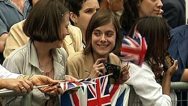 Crowds cheer the wedding of Prince Edward to Sophie