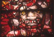 The sequence of windows in St Mary's begins with prophets foretelling the coming of Christ and features Eve, Moses and the Burning Bush. The story continues with Man's redemption: the Nativity, the Rest on the Flight into Egypt, the Assumption, the Crucifixion, the Deposition and the Harrowing of Hell, the Transfiguration, the Ascension and the Pentecost. High up on the north side of the central aisle we find (astonishingly) the enemies of the Church such as Herod and Nero. The Red Devil can be found on the West end - thought to be the people's, rather than the priest's, part of the church - and was a warning intended to inspire good behaviour