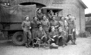 Each of these small snapshots had a message, often humourous, or descriptive, on the reverse. Usually they showed where my father and his comrades were billeted, near this river or that town. Sometimes they were just photographs of the members of his'Click', as he called them, Harry, George, Jack, Doc, Hughie and Ted. One photograph is of a barn. On the reverse my father had written, 'The night before this was taken 'Jerry' tried to bomb us out of it, but as usual he missed'. Thank God.