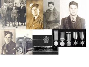Above left to right, the Engelhardt family in Germany, 1936. Wolf Engelhardt as a cadet and in his flying suit and in a picture recovered from the crash. Below left to right, Albert Tuuri and leaving for England, his memorial bar and posthumous medals.