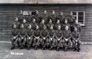 Photograph of 98 Squad probably taken at Swindon training camp. My father, Thomas William Heydon, is in the back row far right.