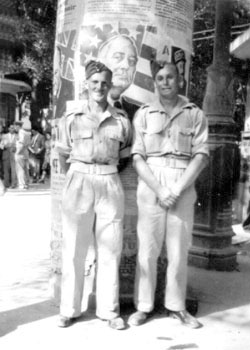 Tunis 15th May 1943 three days after the fighting finished.Tom Mawson and Wireless Operator, Lesley Rundal who went through most of the battles with him.