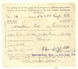 One of my own particular problems has been that a lot of my stories had already been aired in my family’s book entitled ‘And then there were eleven’ (referring to the fact that there were eleven children in the Goldstein family). When I first wrote my own contribution to the book it was in 1988, some 46 years after my service days and I suppose I could be forgiven for getting a few dates wrong.