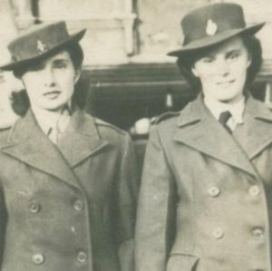 Sylvia( on left) and Doreen. Taken Spring 1942 at Bridgewater Landarmy Training College