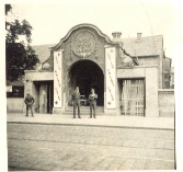 Major J.J.O'Brien and Lt.Walmsley posing outside the Burger Brau Keller