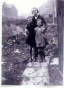 Barbara with her mother and sister in their garden, the morning after the bombing.