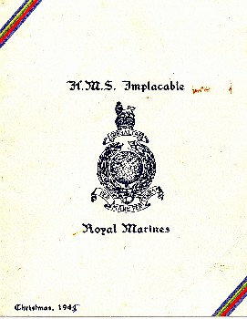 The picture is of the front of a Christmas card sent by me to my parents from onboard HMS Implacable whilst I was serving on her in 1945.