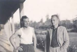 Ron Derrick (left) & Paul Bennett, 55 Bomber Squadron RAF in Habbaniya, Iraq. circa 1940.