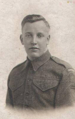 "The morning of the 3rd August we were going into the attack and I was Company runner. We had started to advance when the Company Commander said to me, 'Where is No.2 Platoon?' I replied, 'Still in the trenches Sir', and I was told that they should be in the line of advance. I went back to where they were in their trenches where I stood facing them and gave them the Company Commander's orders. All the time the Germans were laying down a mortar barrage of six-barrelled mortars which fire six bombs in succession and were called 'moaning minnies', because they made a screaming noise as they were fired. They had a very demoralising effect on us and were very frightening. One bomb dropped behind me and knocked me out and when I regained consciousness I have been wounded in the back and was bleeding rather badly. All the men in 2 Platoon who were in the trenches and took the full force of the blast in their faces were dead.