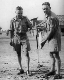L to R - Alan Shaw and Alec Scott just returned to Jhansi from our Saugor road reconnaissance, measuring a mahseer fish we caught by hand while fording the River Betwa causeway! We just got across in time before the monsoon flood - June 1942