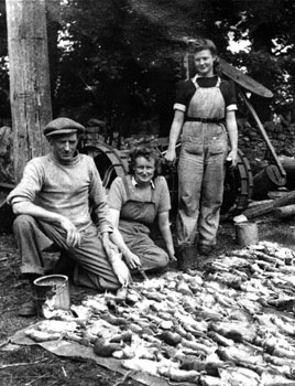 We had some good meals on the farms. Threshing was a big event with people coming from nearby farms to help. The women used to cook a lot of food for the occasion. We were always hungry. I suppose it was working out in the open air that made us so. That was one good reason for going to Chapel on Sundays: To scoff the tea and buns at the end of the service.