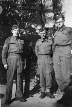 (Left to right) Sgt McLauchlin, Sgt Mackenzie, and Corporal Len Scott in Algiers in 1942. My wife's comment: 'You look as if you'd been sleeping in your battle dress ever since you landed'...