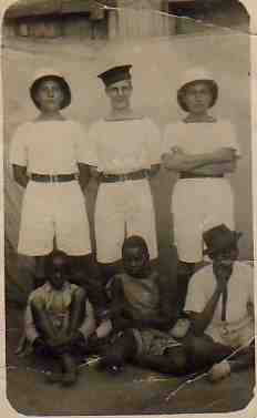 Freetown,Sierra Leone, West Africa 1942 Three war time crew with Philip E. Marshall shown in the centre