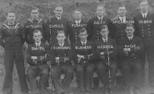 Course members, crossed above those who lost their lives during the course of the war, and subsequently .Mr Dunning is front row second left.