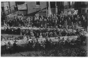 The picture is taken during the V.E. Street party attended by the residents of North and South Birkbeck Roads in Leytonstone, London.