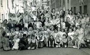 V-day street party, Water Street, Bristol. Alma Payne located 2nd row, 4th from the right.