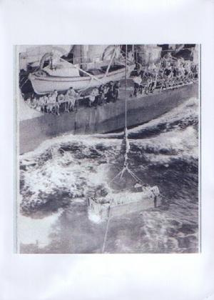 Dad being transfered to a hospital ship after being rescued from the Pacific after 'falling out of his Seafire'.
