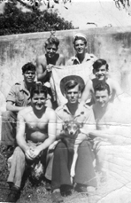 A Japanese Flag, captured in Burma. Arthur Stevenson back left.