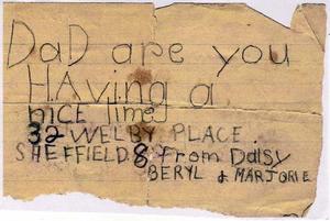 My note to my father whilst he was in the army.