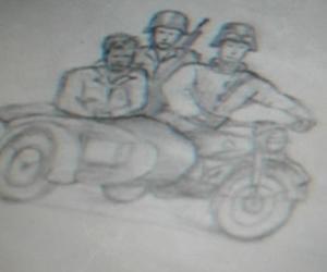 Jeff Hampson's sketch of his arrest by German soldiers after his Mosquito aircraft came down off Holland in November 1943.