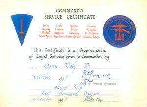 Commando Service Certificate - November 1945