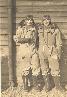 Les (pictured left) with a fellow pilot trainee. Both are kitted out in full flying gear.St Andrews, Scotland 1942.