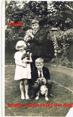 Beattie,Louis and peter and Billy the dog at Hopton Road,Streatham in 1936