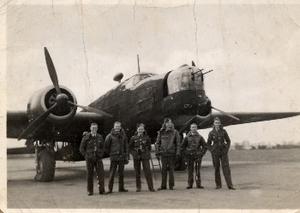 Frank was a flight sergeant in the RAF as an air gunner and wireless operator on this Wellington Bomber. He is second on the right on the photo with the crew. Tom Martin, Franks brother, later joined the RAF himself in 1943 and after the war was stationed in the Middle East near, Cairo.