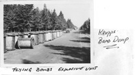 Stationed in Eindhoven for the Christmas period. Came across a new mine some 40 ft long weighing many tons. Took photographs for Air Ministry - called away (very unusual) for about 30 minutes only to hear a tremendous bang. On returning to site found a crater 40 ft wide and many feet deep. If I hadn't been called away would probably have gone up with it. At times I felt we were being looked after by a divine power. Could quote a number of instances of similar experiences. Poison Gas Never used as far as known, we dumped hundreds of litres in the North Sea. We became responsible for all bomb dumps - take records, tidy up prior to demolition. Air crew were a nuisance as they ignored notices to keep out and fooled around. On one occasion we found some 15 air, crew disturbing our sorting out. More than one life was lost by our men when tidying up after the air crew.