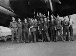 AIR CREW AND GROUND CREW pictured with the lancaster ED 655 at RAF Scampton