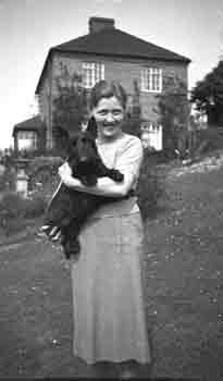 Minna Chatrine Scott, nee Tofte, formerly of the ATS, in Warlingham with her Scots Terrier