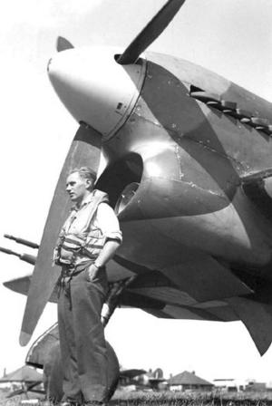 Ron Pottinger with Typhoon taken at Manston, 1943