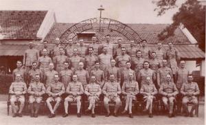 The photograph shows him as a L/Sgt, second from the left on the second row from the front. The picture is captioned on the back as “Annual Mess Photo 1940”, and is presumably that of the Sergeants Mess in Bangalore. At the time the picture was taken, he was serving with 61st Coy.
