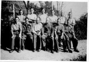 We had a very good guard named Alfred Schitzstahler. He came from Essen and had worked for Krupps before he was called up. We had a good relationship with him and he treated us very well. He was the only guard so there had to be some mutual trust. One Sunday afternoon he said that we could all go out for a walk on our own. We were all very surprised, this was unprecedented and we hoped that Alfred was not sticking his neck out too far. It was true that we went to and fro to work on our own but this was different. We all went out and made for a deep hollow with a large pond in it, some distance from the camp. Soon after our arrival lots of young Polish men and girls turned up. It was nice to see them and have a chat in our limited German but we became very uneasy because contact with civilians, except for work, was strictly forbidden.