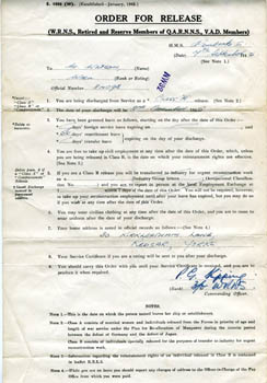 Order for Release (Demob) dated 7th September 1945.