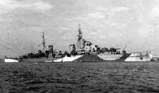 Bellona was a modified Dido class cruiser named after a Goddess of War. Her motto was 'Battle is our Business'. Her main armament was 5.25 guns in twin turrets. She was commisioned around September 1943, having been built at the Fairfield ship-building and engineering company's shipyard at Govan on the Clyde. At the same time, a battleship, an aircraft carrier and several destroyers were being built at Fairfields. Over 50 warships were built on the Clyde. As a Petty Officer Higher Submarine Detector I stood by the ship while she was being fitted out, and stayed with her until the end of war in Europe.