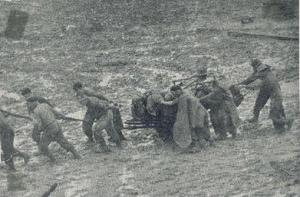 It was in these conditions that, after a time in action, a fatalistic attitude takes possession of the mind, an indifference possessed us to the dangers of attack. And so we trudged on, wearily climbing the steep mountains and the winding tracks that were like great rivers of mud.