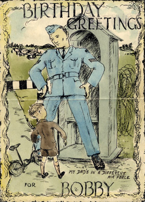 I don't remember saying this, but apparently when I arrived home I told my Mum that I had spoken to the sentry at the main gate and told him "My Dad is in a different airforce". The next time Mum wrote to Dad she mentioned my experience with the sentry and what I had said.