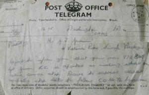 The telegram sent to Eddie's family in Tredegar telling them he was missing.