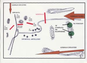 Quote 'the resistance at Sidi Nsir helped to delay this crack German Corps for some 48 hours, giving time for extra mining of the road and the reinforcement of Hunts Farm. The German attack was successfully repulsed. I am really proud of my Hampshire mates who ‘fought like the Tigers on our regimental badge’, and the courageous RA lads who supported us all the way. Later Newnham wrote to our colonel ‘these lads were tougher than anything I have ever served with, or hope to serve with. There was no suggestion of a waiver — every man stuck to his rifle, his bren, his mortar to the end’. The action described in ‘Last Stand! Famous Battles Against The Odds’ Bryan Perrett 1991.