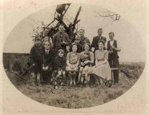 The family and friends of Mr. F Burditt shown in the above photograph are starting with the two men standing to the right of the two New Zelanders, a Family Friend, Mr. F Burditt's father. standing to the right of the New Zelanders is another family friend with Russell his brother's friend stood in front. The front row from left to right Mr. F Burditt's yongest brother Harold, Mr. Jim Corbridge, Mr. F Burditt's eldest nephew Ronne, Mr. F Burditt's eldest brother Stanley, Mr. F Burditt's eldest sister Lilian, Mr. F Burditt's youngest nephew Frankie sat on Mr. F Burditt's mother's knee, Mr. F Burditt's youngest sister Kathleen.