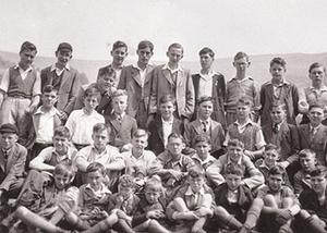 Richard Gilden (back row, centre, open-necked white shirt) with his evacuated school friends in Wales
