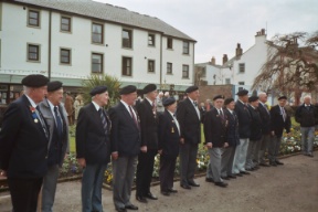 Jack Farrell (First left on the photograph closest to the camera) with fellow comrades from the Normandy Veterans Association. This was a commemorative service organised by the West Cumbria Branch of the Normandy Veterans Association at St Nicholas' Church Gardens, Whitehaven Cumbria, 11 November 2003.
