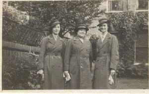 With girls from the first aid post, a week before my wedding. (L to R): Eileen, Mabel (Smith), Myself