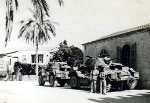 3rd The King’s Own Hussars ‘Jock’ Shepherd and Charlie Riggs outside police H.Q. Jaffa September 1946