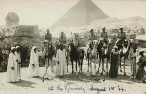 Of my week's leave in Cairo I most vividly remember a day trip to the Pyramids and the Sphinx and the pleasant days we spent swimming at the pool at Heliopolis. In my Album is the standard photo of me on a camel in front of the Pyramids.
